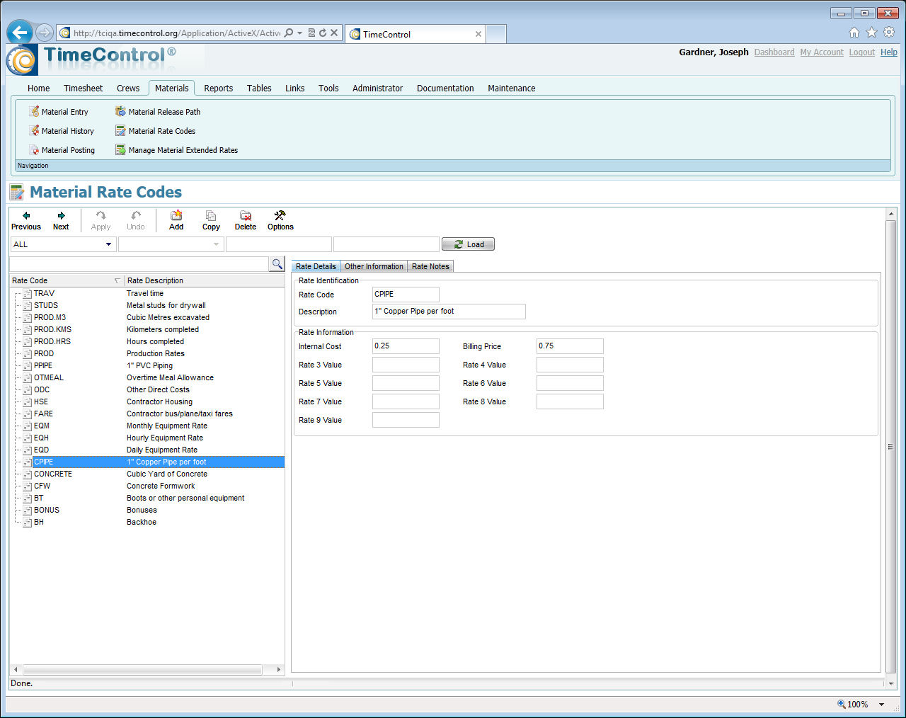 The Material / Equipment / Production Entry module combines a Material Entry type along with TimeControl's Resource entries and Material Rates entries. The Rate system allows a denomination to be tracked which is defined by you. So, need to track material by meters or yards or both? No problem. Need to track a price per Cubic Yard? Again, no problem. Need to track individual units or pallets? Easy. This is all definable in the Rates Table.