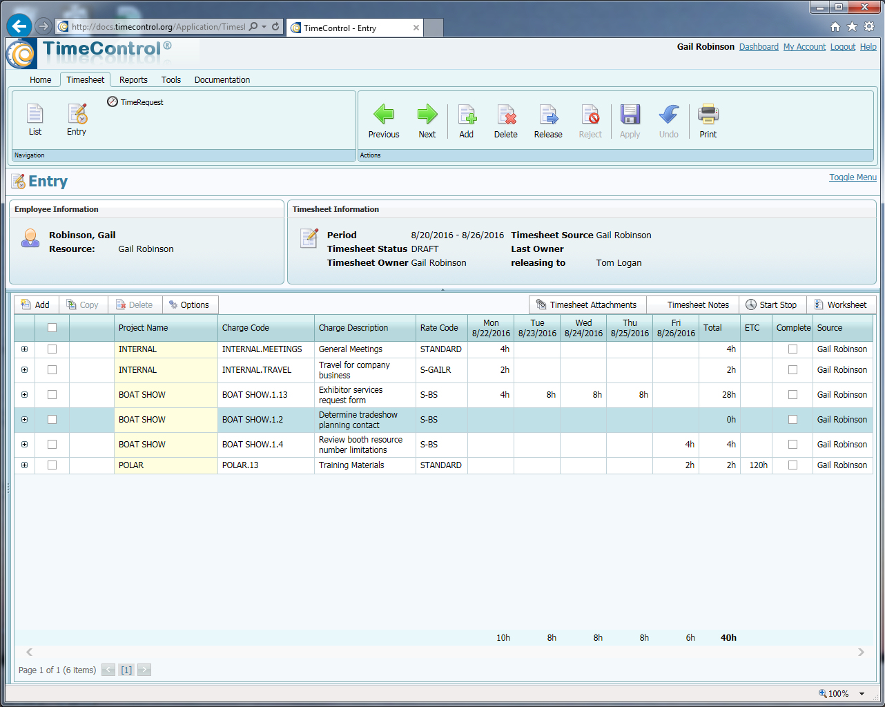 The TimeControl 7 timesheet has been completely rewritten to allow all cells in the timesheet to be edited simultaneously. In previous versions, a single line had to be edited at a time due to the many customizable validations that are tracked on each cell and each line. We have determined methods to accomplish the same thing while allowing all the lines to be changed at once. For those with timesheets that have a large number of pre-loaded tasks, this will be a welcome change.